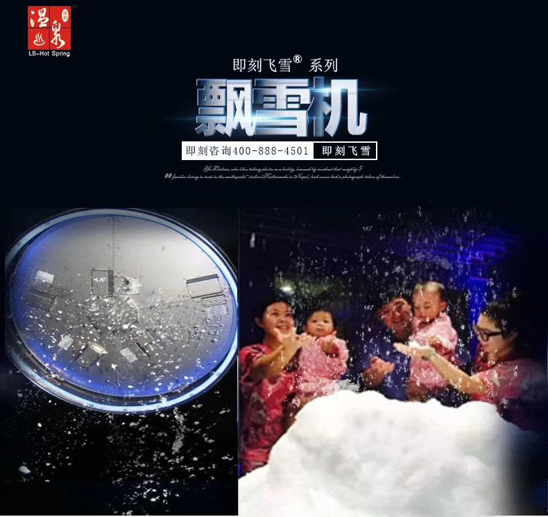 適用范圍: 即便是在南方炎熱的夏天,即刻飛雪p飄雪機制造出來的雪花,也能為溫泉浴場、休閑洗浴、酒店、雪景主題酒吧、冷蒸房、迪廳、咖啡廳、飄雪小屋、冰雪主題聚會等場所提供雪體驗與藝術造景,享受冰雪帶來的樂趣。