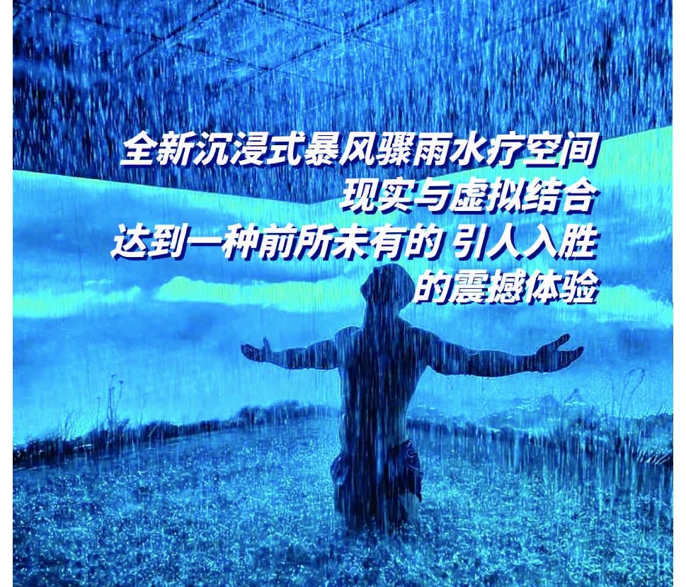 技術集成:暴風雨環境水療空間的設計和建造通常會使用各種先進的技術來增強顧客體驗,需要專業的團隊進行規劃和實施,綜合考慮空間的結構、布局、裝飾、燈光、音效等各個方面。